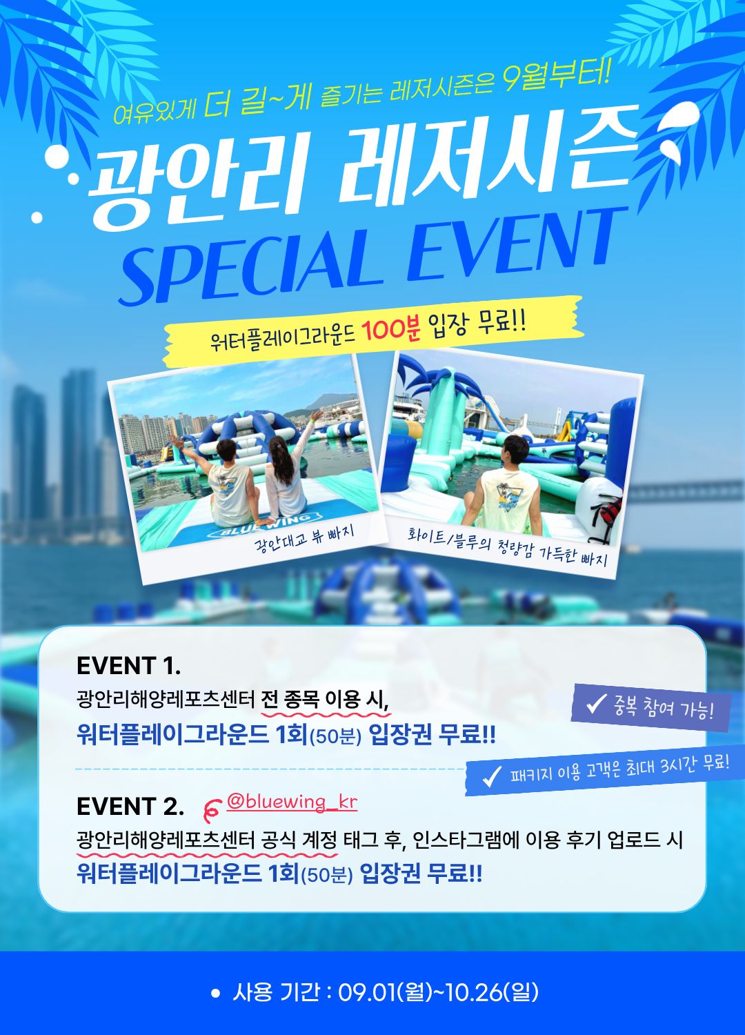 EVENT 2. 광안리해양레포츠센터 공식 계정(@bluewing_kr) 태그 후,