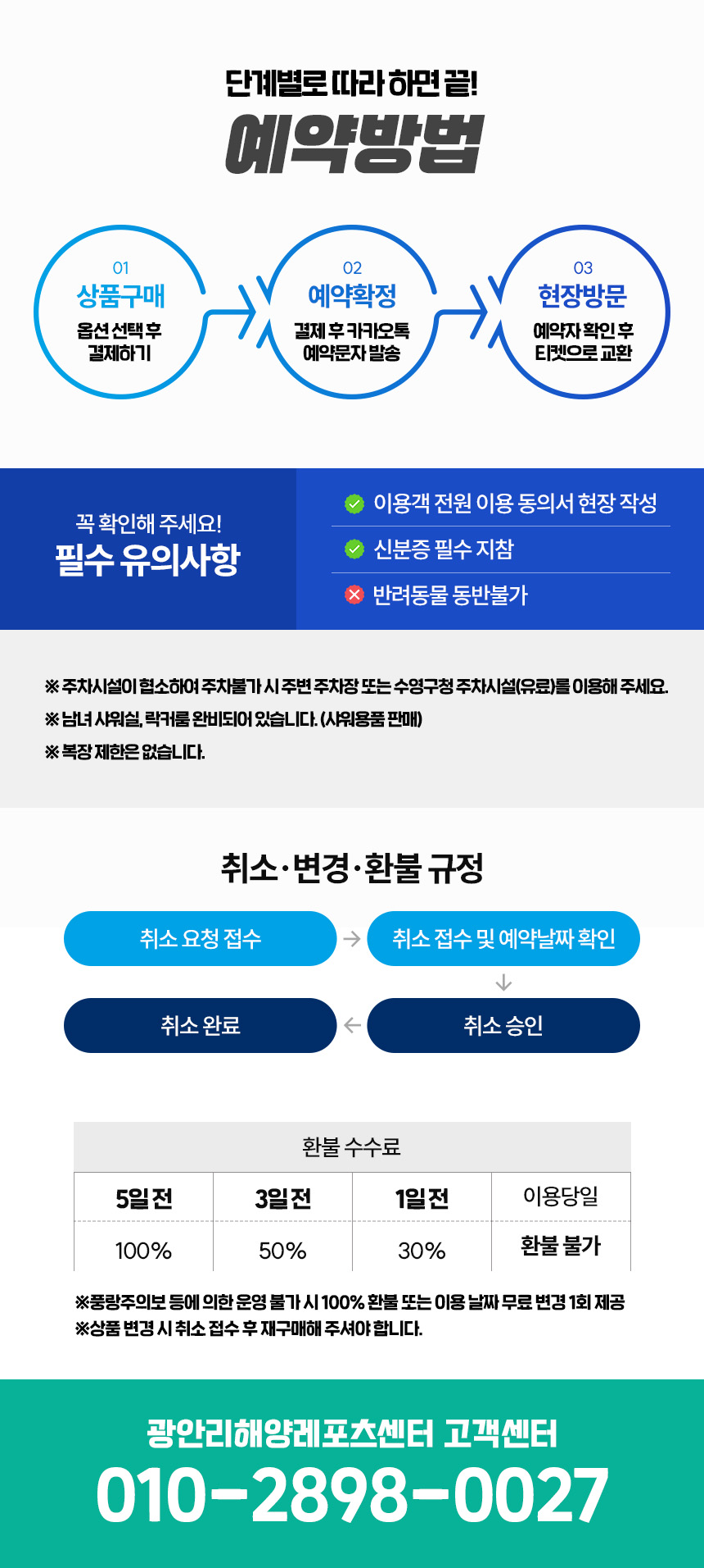 - 이용동의서 작성 후, 현장에서 예약확인 및 티켓을 수령합니다
